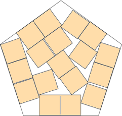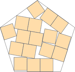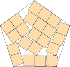 | s = cos(27°) / cos(18°) s = .936+ Trivial. | s = 4√(1–2/√5)+√5–2 s = 1.535+ Found by Erich Friedman in March 2012. | s = 1.695+ Found by David W. Cantrell in July 2012. |