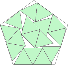 | s = cos(42°) / cos(18°) s = .781+ Trivial. | s = √(6/(3+√5)) s = 1.070+ Trivial. | s = 1.143+ Found by Maurizio Morandi in August 2012. |