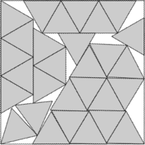 The following pictures show n equilateral triangles with side 1 packed inside the smallest known square (of side length s).