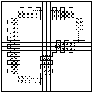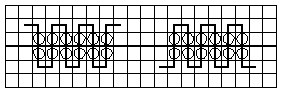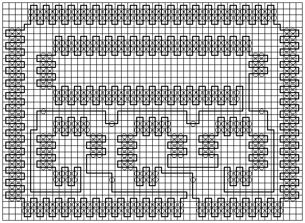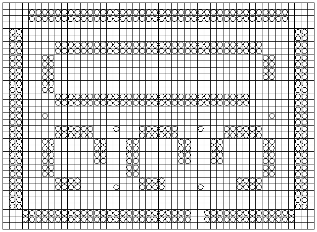 These wall units will be placed next to each other to form passageways corresponding to the edges of G*. There will be 3 vacant squares between rows of pearls, which allows a single path to pass between them once we account for the zig-zagging solution to the wall unit. Small blank areas called rooms are created at each corner or intersection of the hallways (see Figure 6).