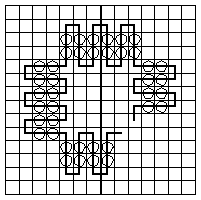 In each room corresponding to a vertex of G*, we also place a single white pearl so that it does not touch any other pearls. This makes any solution to the puzzle visit each room corresponding to a vertex at least once. Since G* is a cubic graph and the passageways are only one unit wide, a room can not be visited again once the path leaves it. The endpoints of the path for each wall unit should be placed in a room corresponding to a vertex of G* to ensure that this wall unit is added to the solution loop when that room is visited by the loop. Therefore the Pearl puzzle we have constructed has a solution if and only if the corresponding graph has a Hamiltonian circuit. For example, for the graph in Figure 2, see Figure 7 for such a puzzle and Figure 8 for its solution.